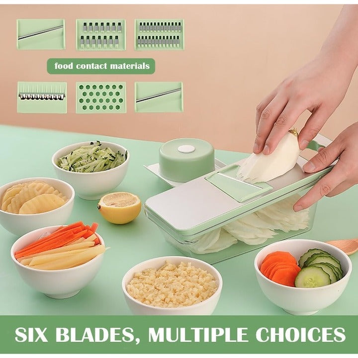 Simplifică-ți rutina din bucătărie cu acest tocător de legume multifuncțional, ideal pentru feliere rapidă și uniformă! Cu un design ergonomic și 6 lame interschimbabile din oțel inoxidabil, vei tăia fructe și legume cu precizie profesională – fără efort și fără risipă de timp.