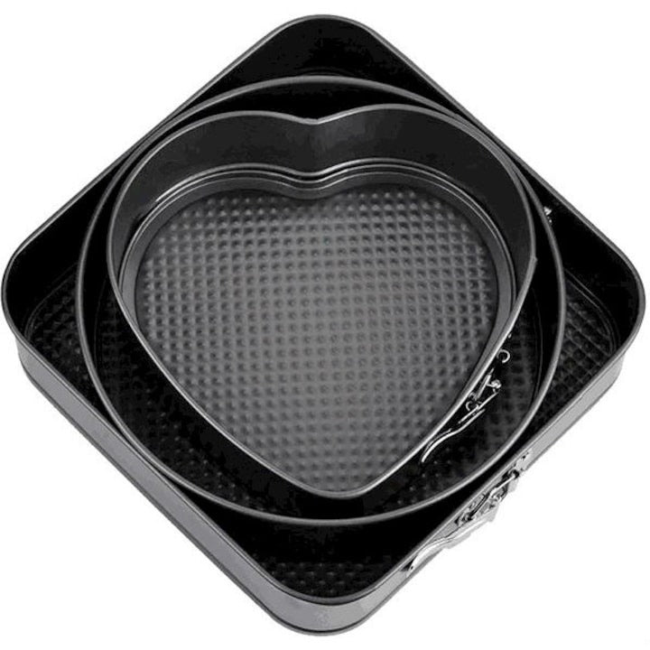 Set 3 Tăvi de Copt cu Fund Detașabil – Rotundă, Inimă și Pătrată
