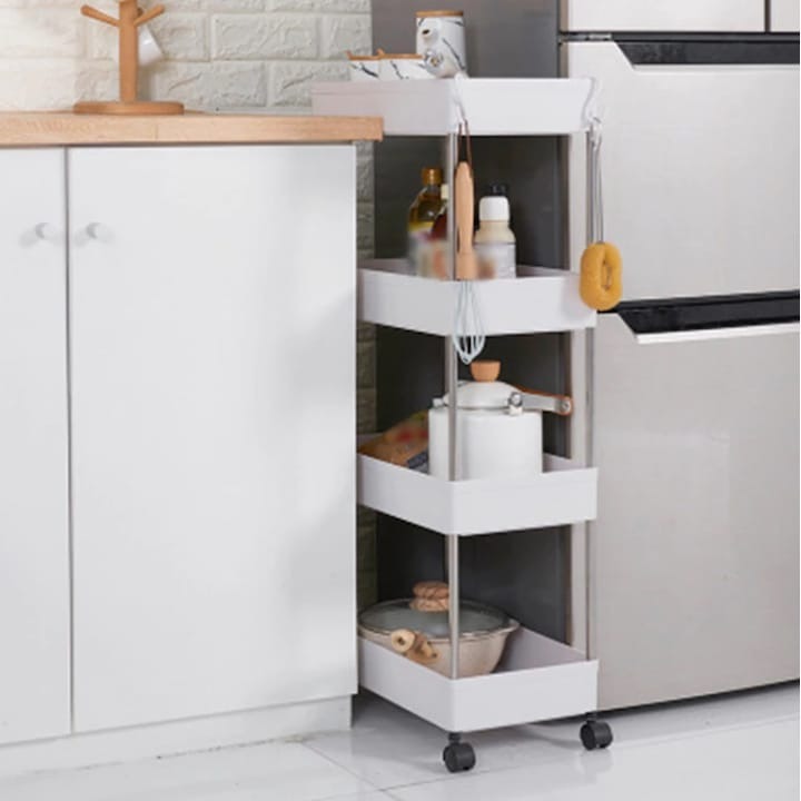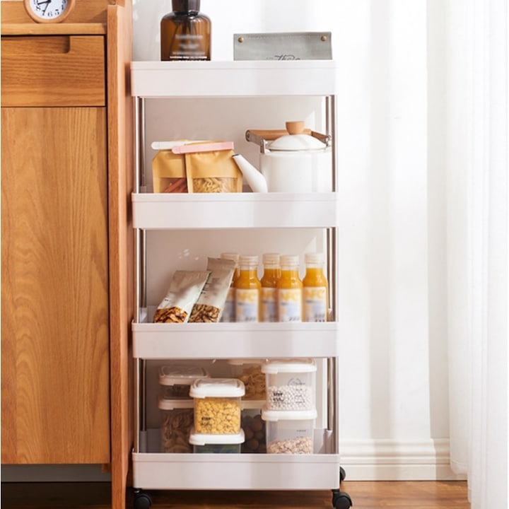 Optimizează fiecare colț din locuința ta cu acest raft mobil multifuncțional cu 4 etaje, ideal pentru organizarea eficientă a accesoriilor, produselor de curățenie, ustensilelor de bucătărie, cărților sau cosmeticelor! Compact, elegant și ușor de mutat – este soluția perfectă pentru orice spațiu! 🏡