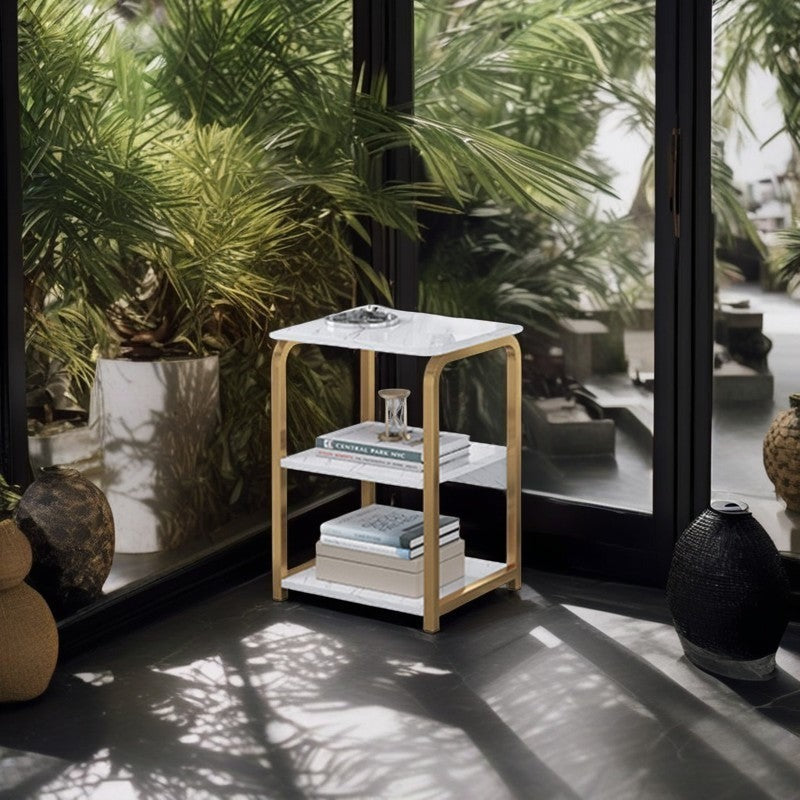 Masuta laterala moderna nordica 3 niveluri alb auriu 62x40x30 cm