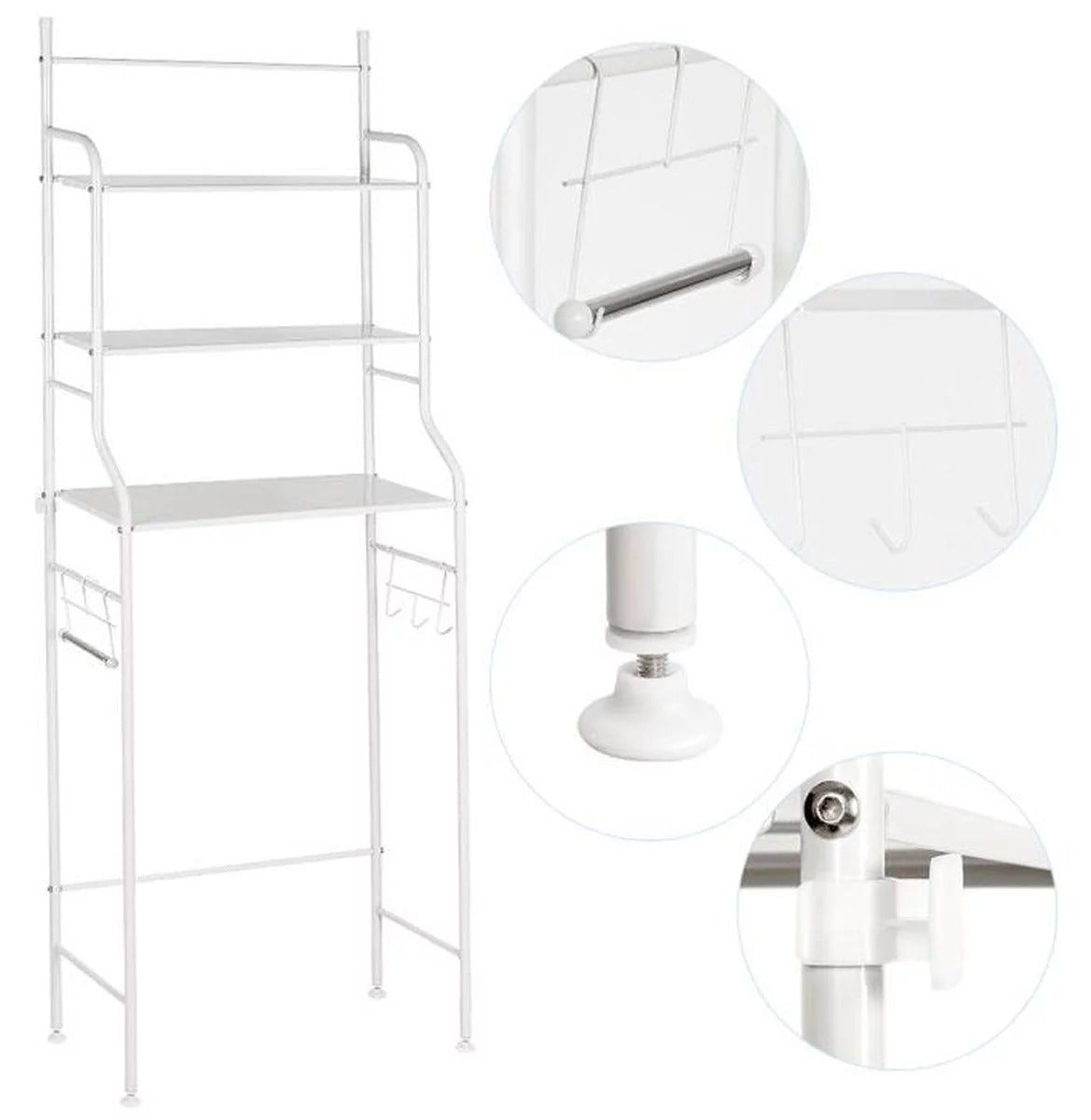 Organizează baia rapid și inteligent cu acest raft multifuncțional de depozitare, conceput să se monteze deasupra toaletei sau a mașinii de spălat. Profită de spațiul vertical nefolosit și păstrează la îndemână prosoape, detergenți, cosmetice sau accesorii de baie. Design stabil, practic și ușor de integrat în orice tip de baie, chiar și în cele mici.